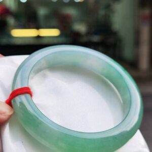 ✨ 木拿場口 頂級放光玻璃種飄綠花 正圈寬版手鐲