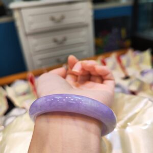 🌸 淡紫羅蘭春彩圓骨正圈手鐲|天然緬甸玉A貨 🌸