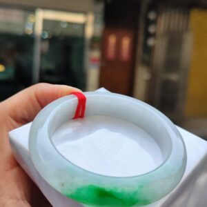 🌸 玻璃種飄綠花正圈圓骨手鐲 天然緬甸玉A貨 🌸